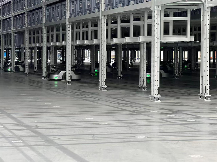 走近占地近2万平方米的深圳小件智狼仓,首先映入眼帘的是高大的货架,仔细一看,近200台智狼搬运机器人有序穿梭,智狼飞梯机器人则轻盈地将货物托举到三四层楼高的货架……这里的每一托货物都带着电子身份码,而智狼机器人则通过定位系统与物联网感知技术,实现托盘精准对接。