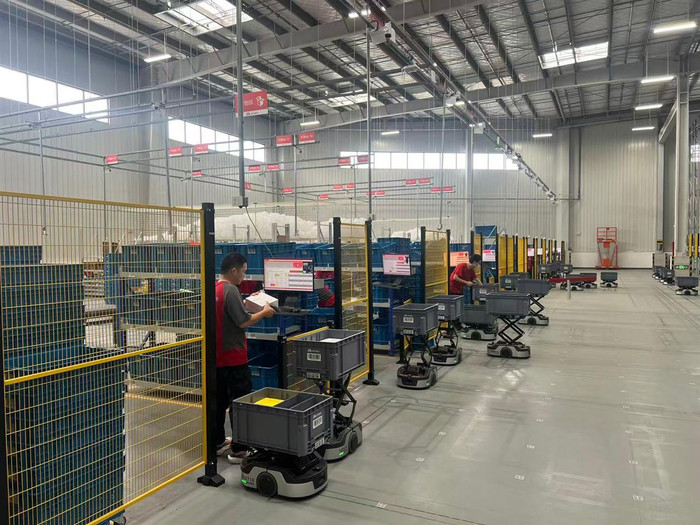 京东物流广东省惠州中小件运营城市运营谢海利告诉记者,作为全球领先的智能仓储标杆,深圳小件智狼仓在今年10月投入使用,总体面积近2万平米,其中一期使用面积约3600平米。“依托京东自研的高科技,革命性地推出“智狼货到人系统”,它由“智狼搬运机器人”和“智狼飞梯机器人”协同作业,主要解决12米以下标准料箱存储场景下现有自动化设备成本高、储量能力不足的行业痛点,并带来成本、效率、体验三方向的进一步突破。