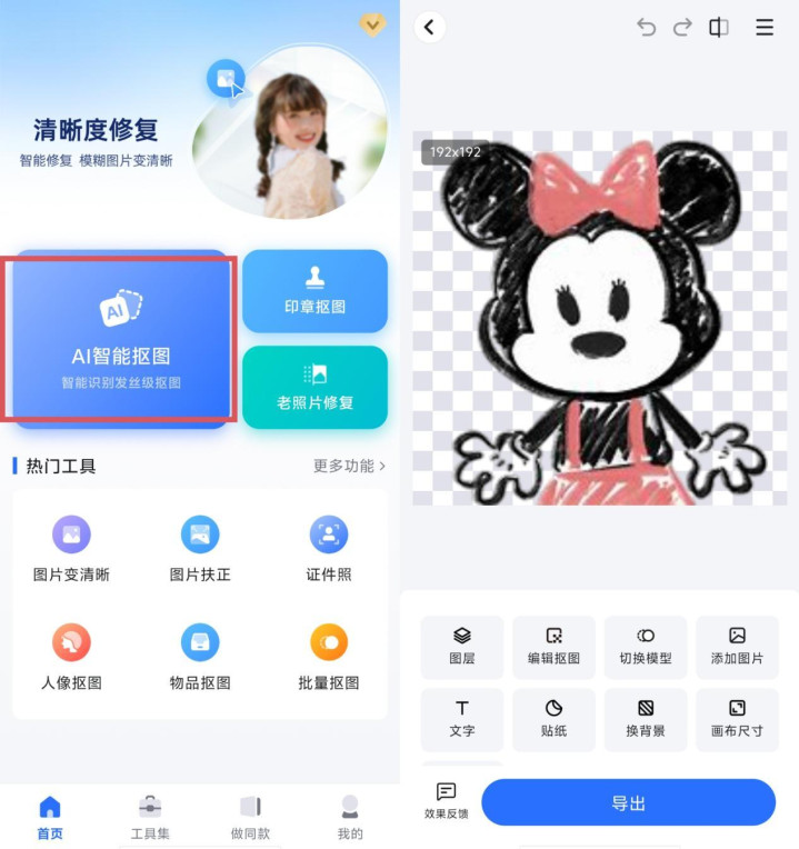 特色功能:提供多种抠图模式,涵盖人像、物品、汽车等,精准识别主体;支持对抠出图片进行背景替换与编辑,合成效果自然逼真。