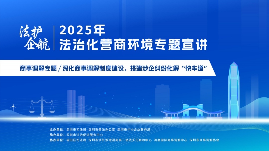 为全面贯彻落实民营经济促进法,营造一流法治化营商环境,提升企业对商事调解的认可度和应用能力,由深圳市司法局、深圳市普法办公室、深圳市中小企业服务局主办,深圳市法治促进服务中心承办,福田区司法局、深圳市涉外涉港澳商事一站式多元解纷中心、深圳市商事调解协会、河套国际商事调解中心协办的“法护企航 2025年法治化营商环境专题宣讲”之商事调解服务专题于6月27日在深圳新一代产业园4栋4楼银湖山厅顺利举行。